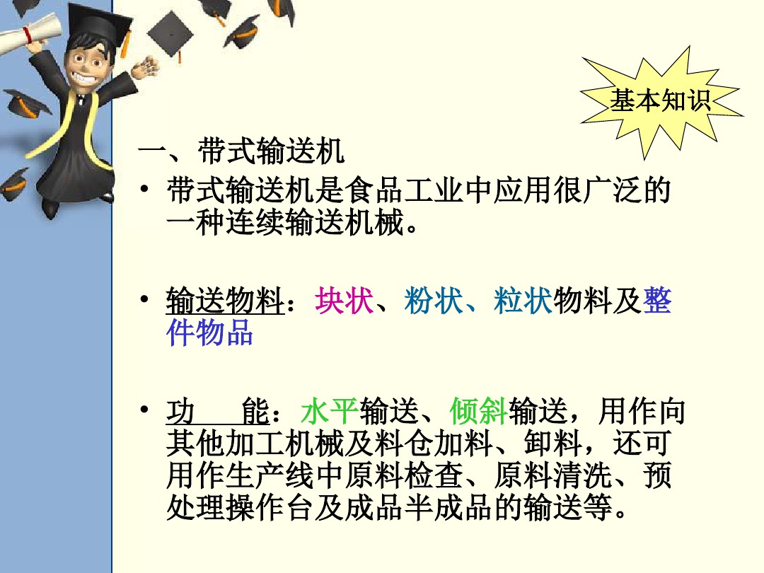 帶式輸送機 帶式輸送機是食品工業中應用很廣泛的 一種連續輸送機械。