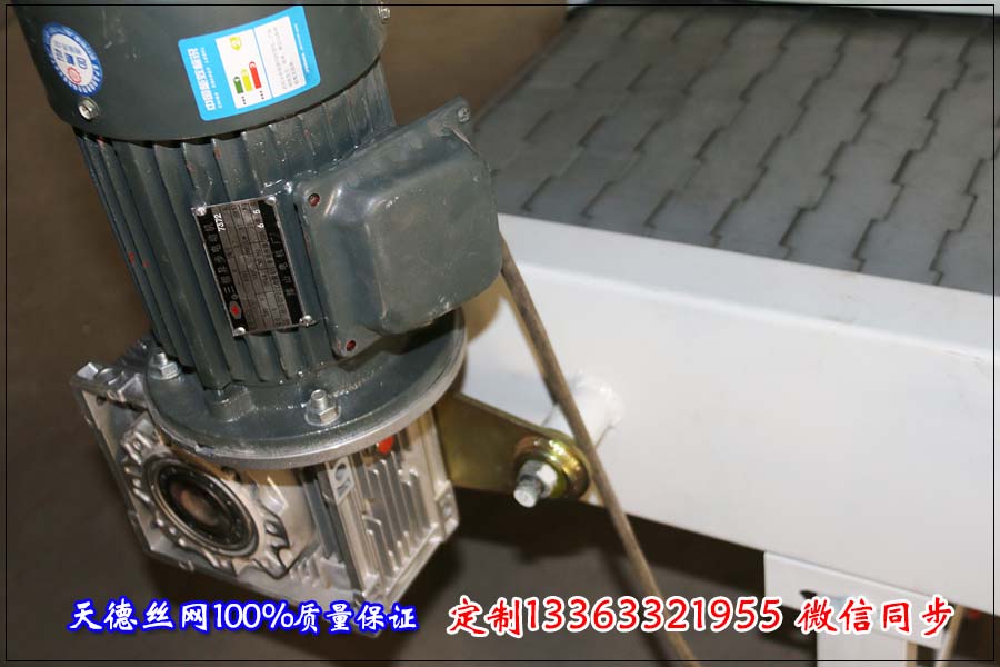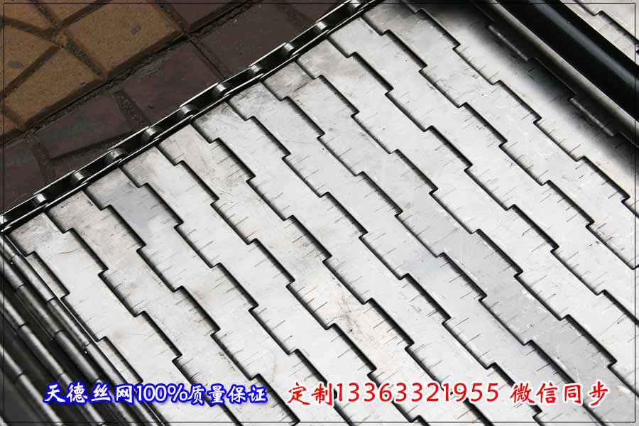 詳細的規格如下: 鏈板式不銹鋼輸送帶的詳細規格: 寬度:不含兩側鏈條和擋板的寬度為807毫米,鏈板輸送機的總寬度為820毫米左右。 輸送鏈板總長度為12米,鏈板輸送機的總高度為6米。因為輸送鏈板要轉一周所以總長是輸送機的一倍。 鏈板輸送機的材質與輸送鏈板規格:整機采用不銹鋼304材質,配帶電機、變頻器、減速機;鏈條采用38.1毫米的節距,傳送板采用1.5毫米的厚度,不銹鋼穿桿直徑采用6毫米圓桿支撐,兩側擋板厚度為1.5毫米,高度為5公分。輸送鏈板上的刮板厚度為1.5毫米,高度為5公分,刮板間距為40公分。 天德輸送網鏈廠多年來加工各種規格的輸送機、網鏈。