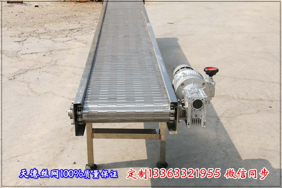 河北天德絲網制品有限公司生產鏈板輸送機、輸送網帶、網帶輸送機、不銹鋼輸送機、鏈條輸送帶、鋼絲編織網帶:13363321955 http://m.esmenhu.com/