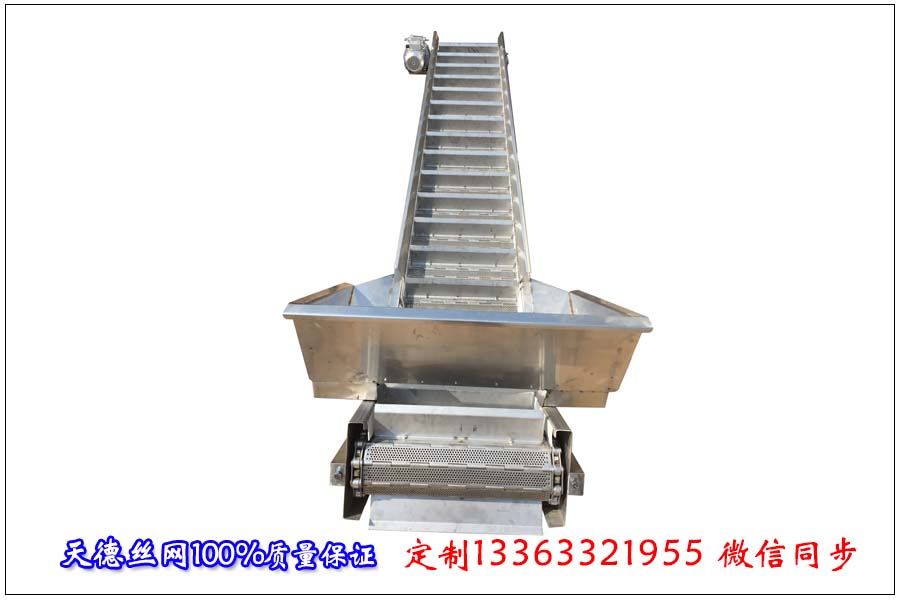 河北天德絲網制品有限公司生產不銹鋼輸送帶、輸送網鏈、提升機、網帶輸送機、鏈板輸送機、輸送鏈板:13363321955