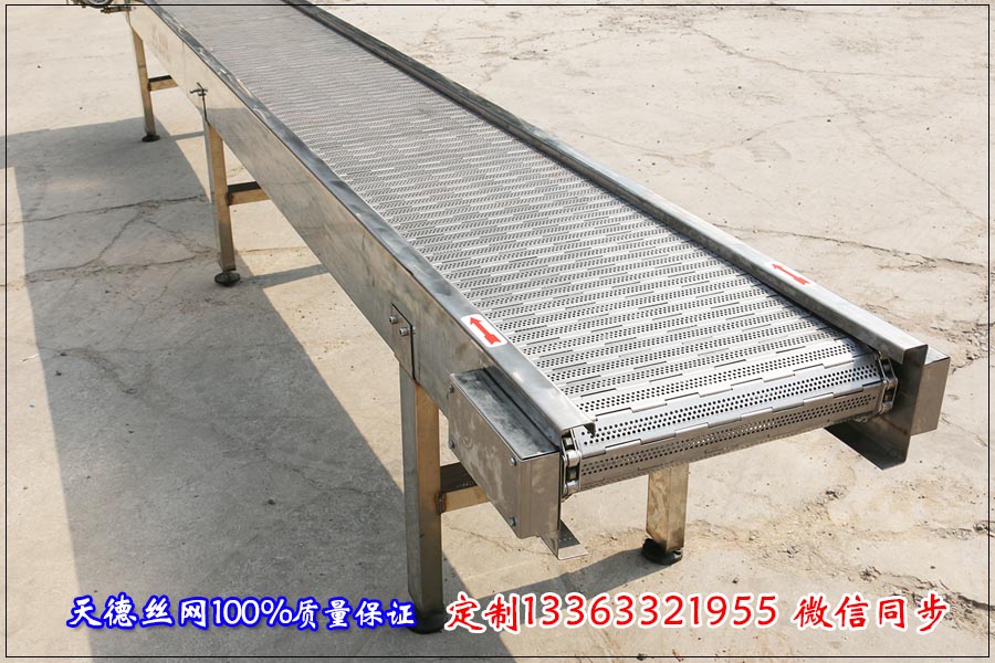 河北天德絲網制品有限公司生產不銹鋼輸送機、網帶輸送機、金屬輸送帶、鏈板輸送帶、板式網鏈:13363321955 http://m.esmenhu.com/