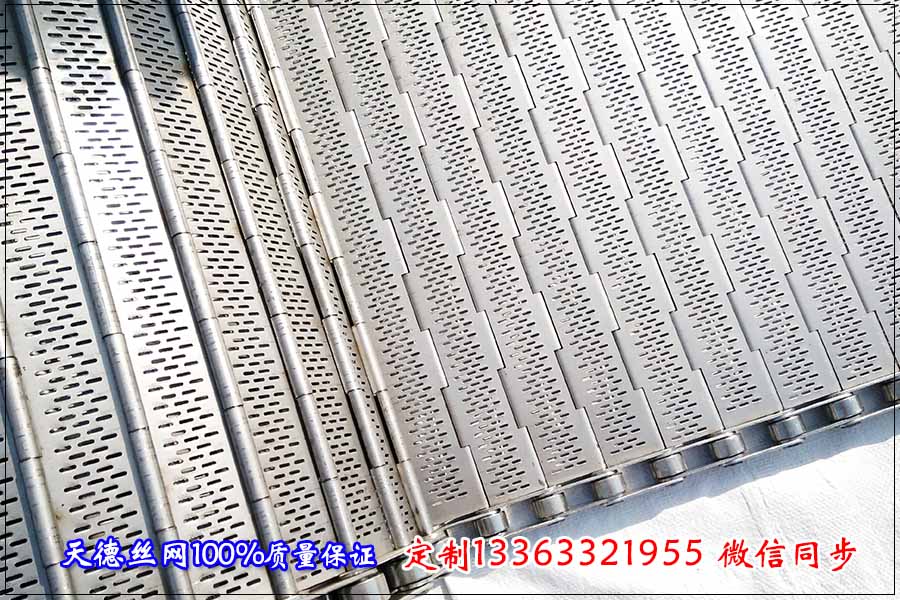 河北天德絲網制品有限公司生產輸送網鏈、輸送鏈板、打孔輸送帶、板式網帶:13363321955 http://m.esmenhu.com/
