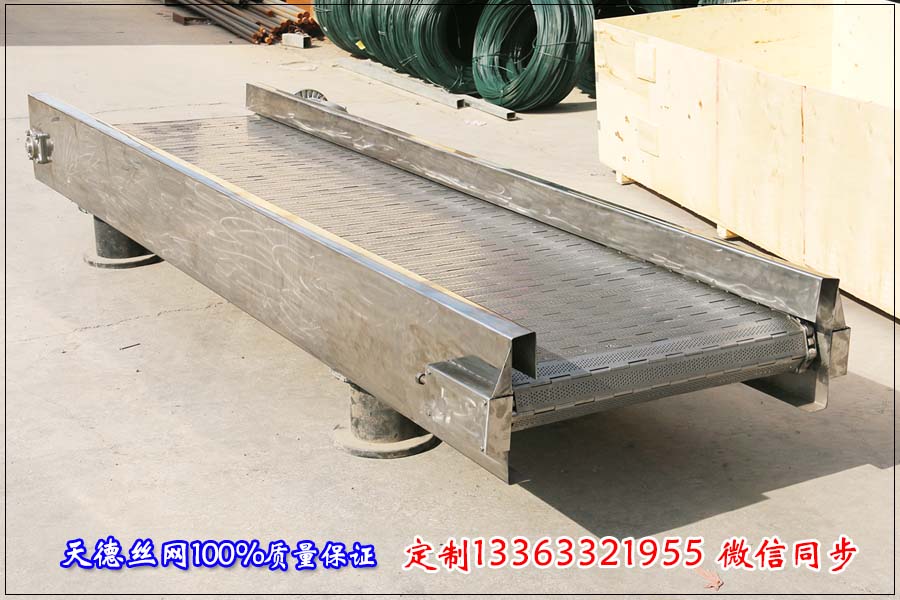 河北天德絲網制品有限公司生產鏈板輸送機、輸送鏈板、耐腐蝕不銹鋼輸送帶:13363321955 http://m.esmenhu.com/