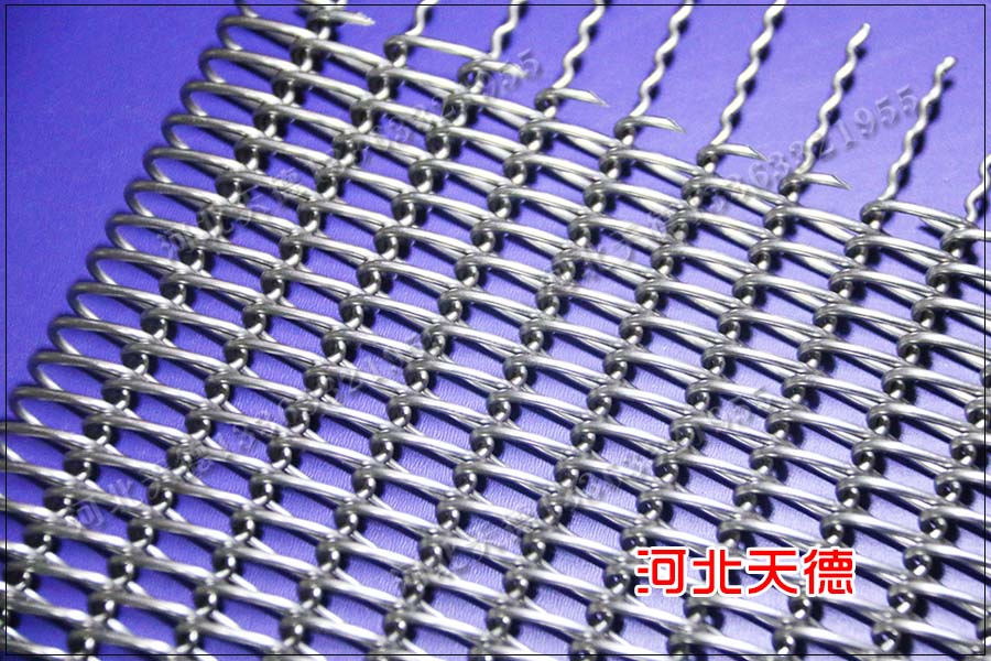根據每米輸送帶上面的載重絲徑定制為:2毫米,鋼絲編織的孔為15*30毫米。