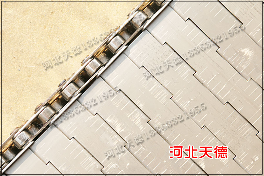 鏈板輸送帶采用1.0的鋼板折彎的,不需要打孔,鏈條節(jié)距為31.75毫米,鏈桿直徑為6毫米,兩條輸送帶都采用不銹鋼304材質,耐高溫耐磨損使用時間長久。