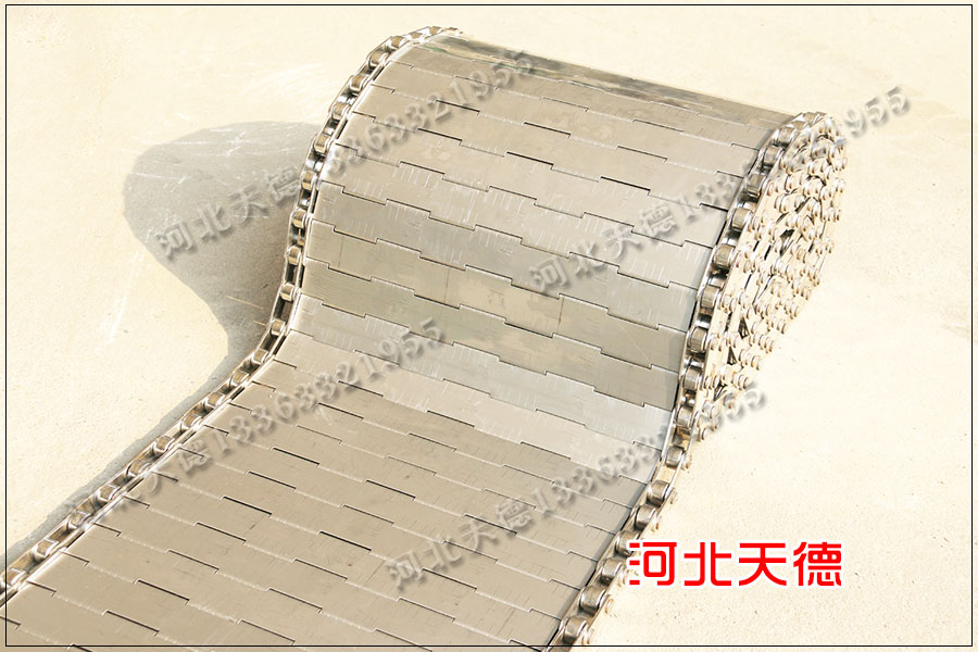 鏈板輸送帶有一個很好的特點就是可以傳送體積小的食品以及重量大的產品,輸送鏈板有不同的多種結構形式的樣式的,比較常見的就是中間是鏈板由串桿連接兩邊的鏈條,輸送鏈板承載力大,我們也可以根據需要做成翻板式的金屬輸送帶,單片鏈板輸送帶只有一頭是由鋼桿連接的,另一端輸送面運行到下面的時候翻板立起來,這樣加工是清理輸送上面與下面堆積的廢料等,因此客戶在定制輸送帶的時候一定要與廠家溝通好使用用途與使用方法。