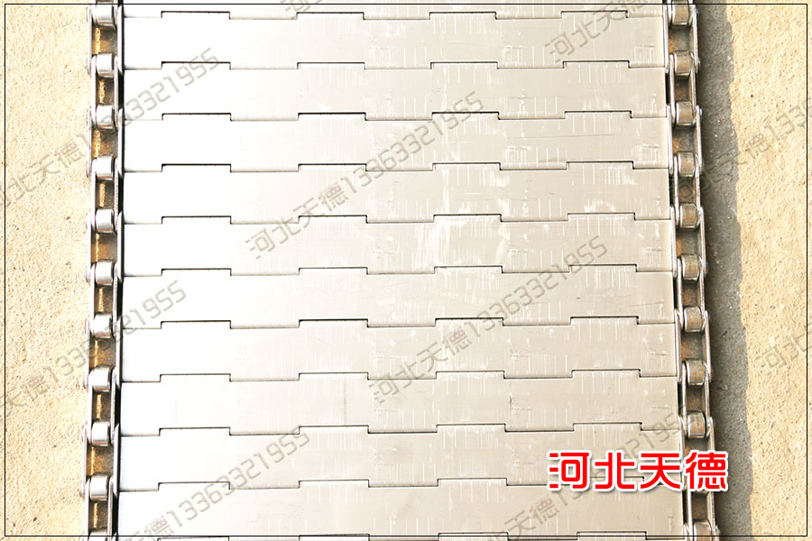 在后期的詳細的溝通中我們知道輸送的較小的活性碳為2.5mm,因此我們建議客戶采用輸送鏈板來傳送物料,雖然輸送鏈板的成本要高一些,但是使用時間更長,而且鏈板不銹鋼輸送帶比鏈條鋼絲網(wǎng)輸送帶要好用。因此我們再次為客戶設(shè)計了輸送鏈板的詳細規(guī)格:鏈板的總寬度為600,長度為160米,分為10條,每條16米。板厚為1.0mm,節(jié)距為38.1mm,桿直徑為8mm。要求安裝高度為6毫米的擋邊。整條鏈板為不銹鋼304材質(zhì)。鏈板搭接縫隙為1毫米左右,因此客戶采用鏈板不銹鋼輸送帶來傳送活性碳是沒有問題的。