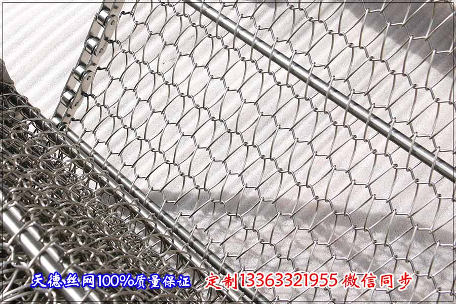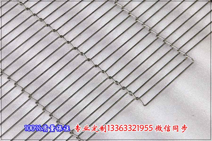 2.多格乙字型輸送網(wǎng)帶用來輸送面包,這種網(wǎng)帶是用不銹鋼絲編織成長格子的形狀,每個(gè)長格子的大小可以定制,這種網(wǎng)帶通常不使用鏈條,采用尼龍拖輪來傳動(dòng)的,這種輸送網(wǎng)帶自重輕也更容易清洗,是行業(yè)輸送中不錯(cuò)的選擇。