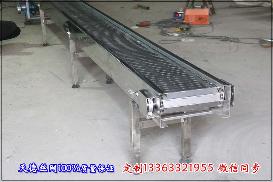 名稱:鏈板輸送機 材質(zhì):碳鋼 規(guī)格:長2.5米,使用寬度200mm 機身板厚2mm 鏈板:節(jié)距38.1mm 板厚1.5mm 串桿6mm 刮板高20mm 間隔300mm一個 。
