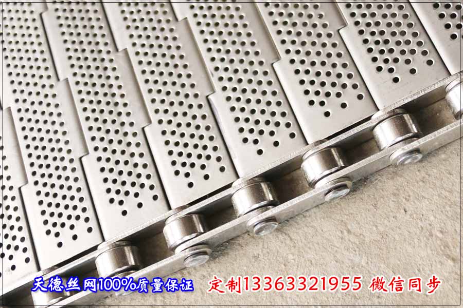 河北天德絲網制品有限公司生產不銹鋼輸送鏈板、輸送網帶、打孔鏈板、小孔輸送帶等:13363321955 http://m.esmenhu.com/