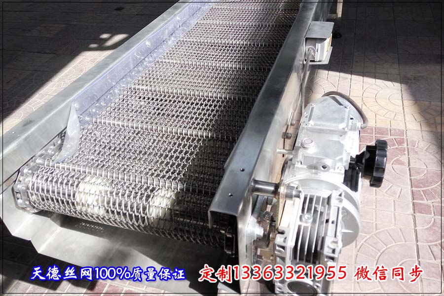 河北天德絲網制品有限公司生產網帶輸送機、不銹鋼網帶、人字輸送帶、耐高溫輸送帶、擋板輸送帶:13363321955 http://m.esmenhu.com/
