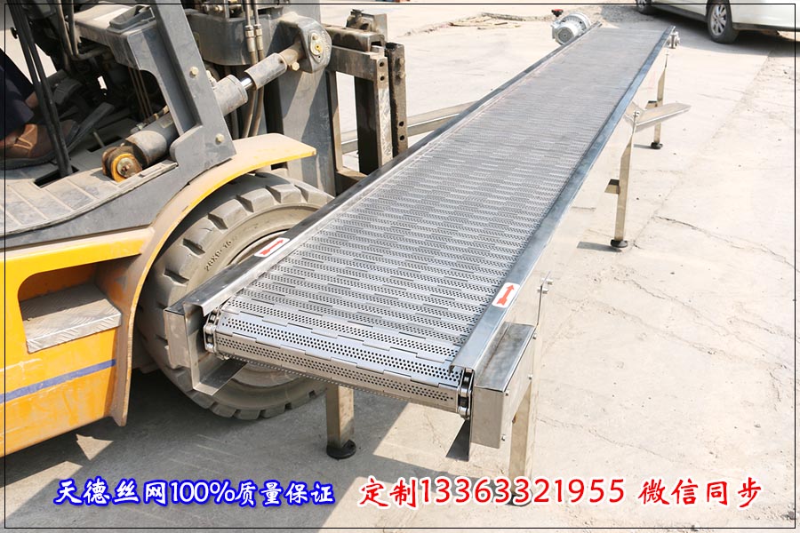 河北天德絲網制品有限公司生產鏈板輸送機、輸送鏈板、轉彎輸送機、轉彎鏈板輸送帶:13363321955 http://m.esmenhu.com/