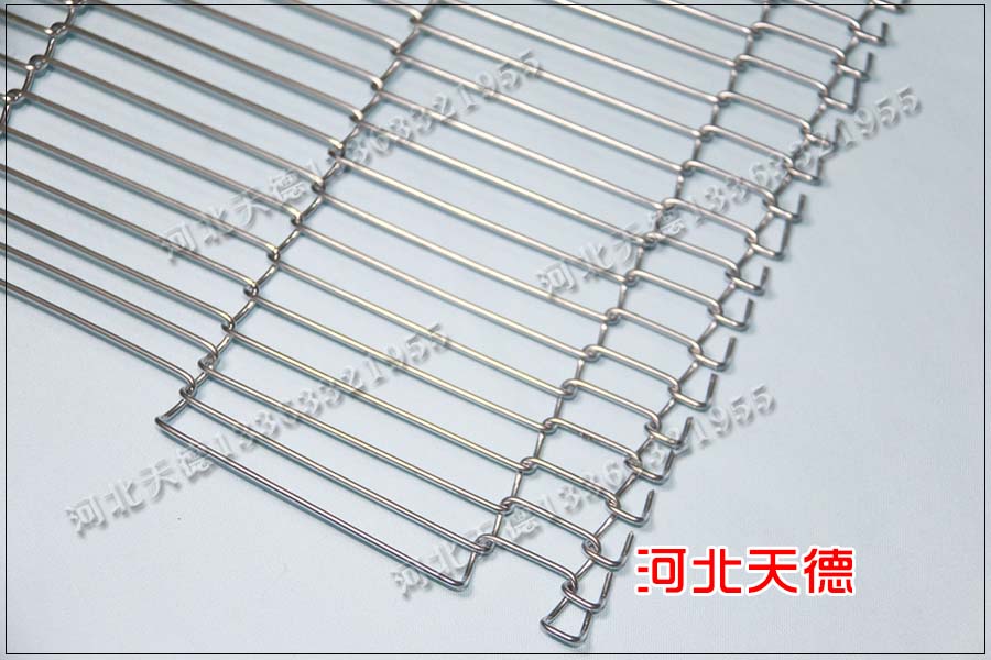 乙字型輸送網帶主要規格:絲徑從0.8mm-3.0mm的304不銹鋼絲或者201不銹鋼絲編織加工而成,經常用在速凍肉類食品,油炸小食品,撒糖設備機械,巧克力涂層機與各種食品輸降溫清洗烘干線。